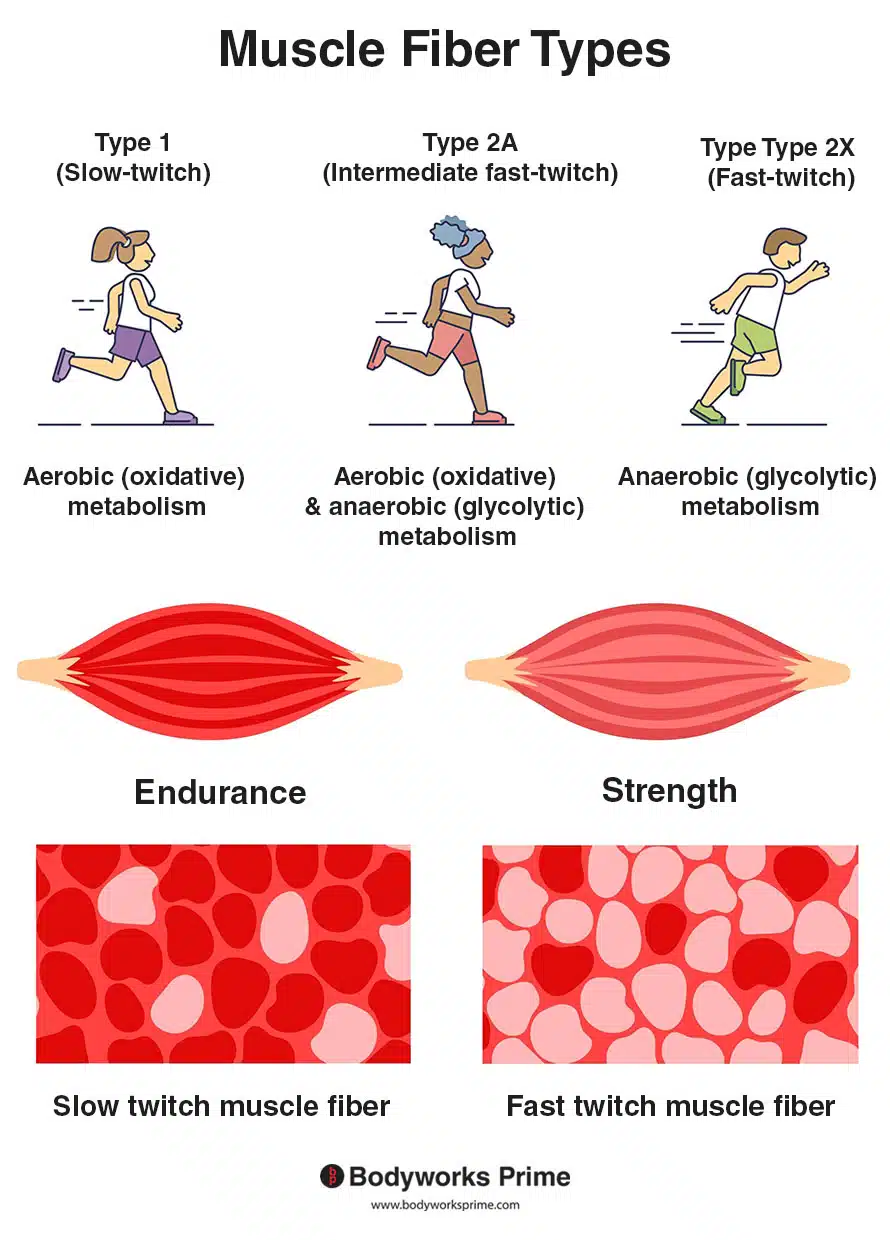 The proportion of each type depends on genetics, activity, and training. Resistance training can shift fibers from one type to another. For example, a marathon runner tends to have more Type I fibers for endurance. Adding strength training, however, can increase Type IIa fibers, improving force production, speed, and versatility.